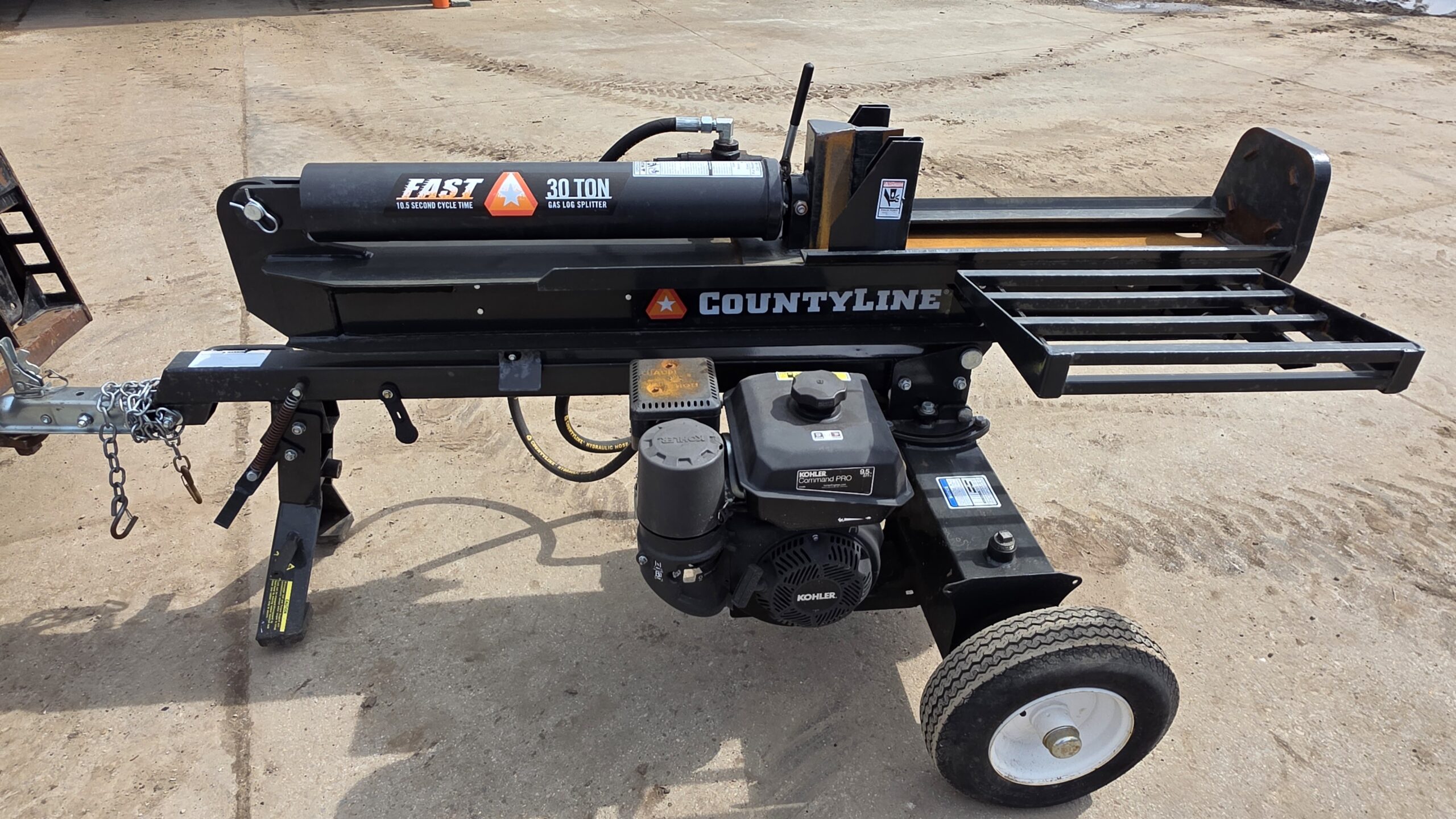Designed for versatility, the CountyLine 30‑ton splitter operates in both horizontal and vertical positions, allowing users to split heavy logs without lifting them onto the beam. Its reliable engine, fast cycle time, and rugged steel construction ensure consistent performance, while the tow‑behind frame makes transport simple for most vehicles.